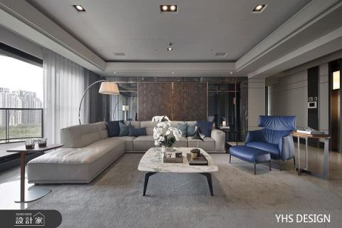 這間 148 坪的現代風大宅,延攬窗外森林公園的翠綠景致,一道大尺度的活動拉門揭...