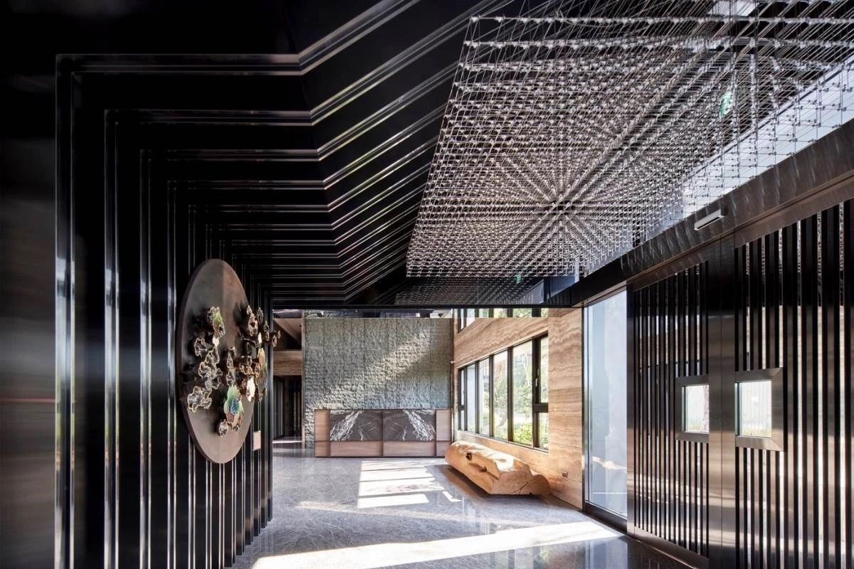 公領域色調沉穩,玻璃拼接視覺通透,石紋電視牆聚焦視線