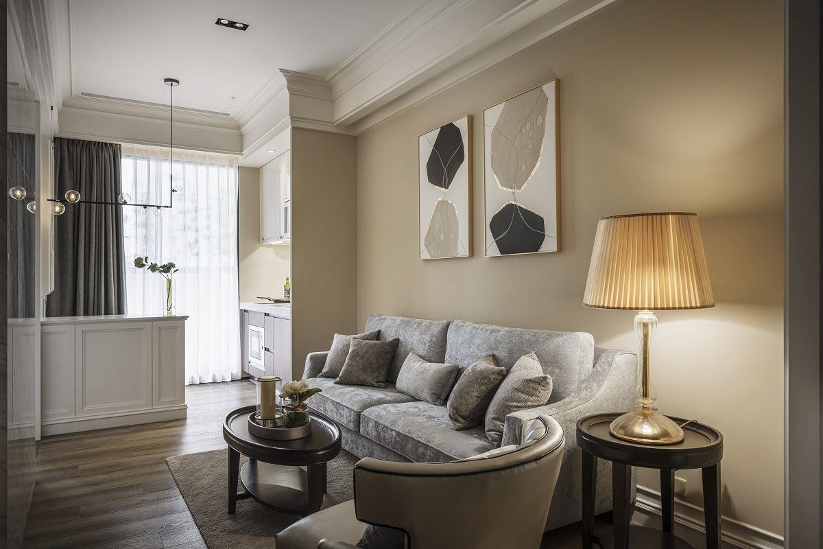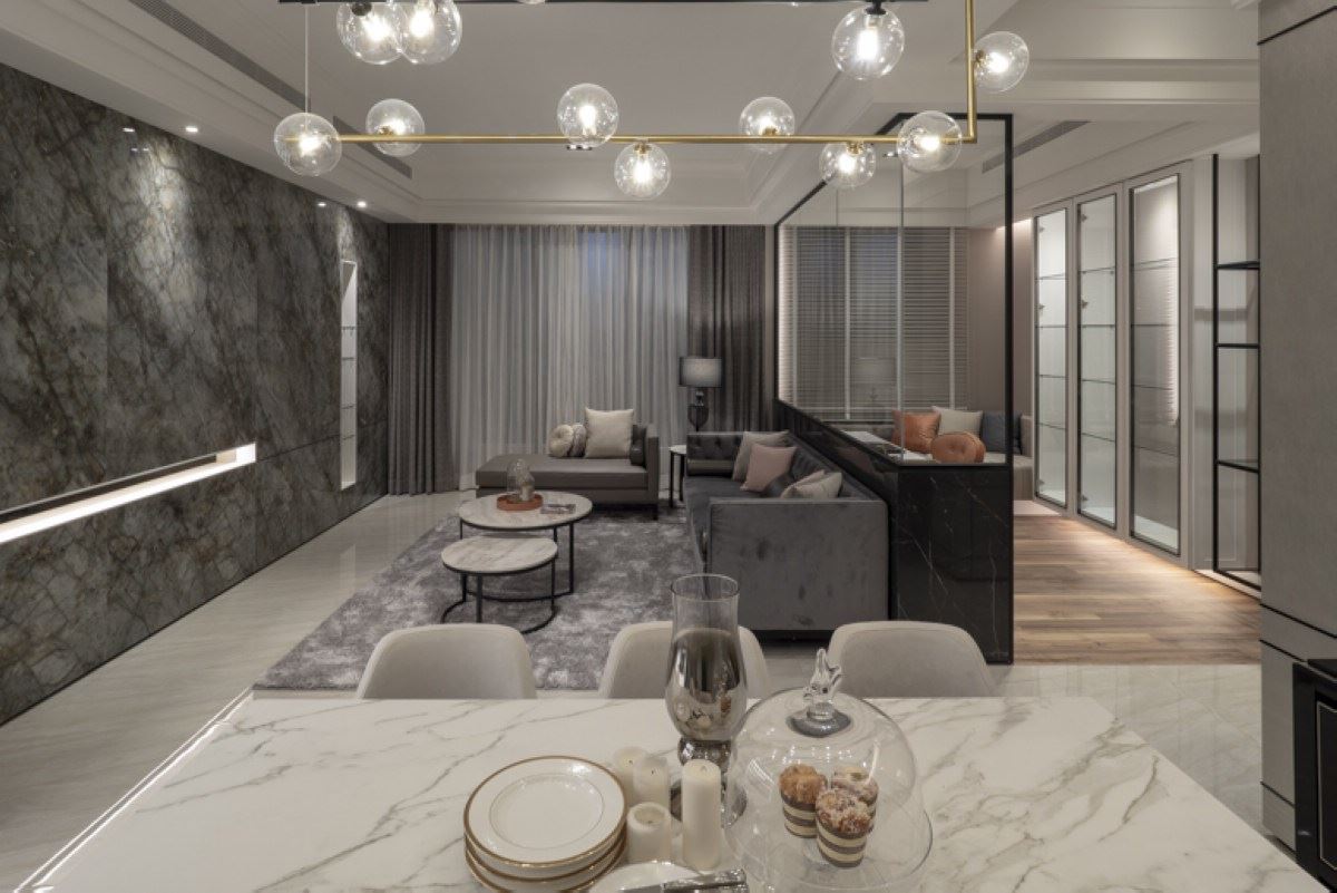 時尚而迷人的混搭風居家,設計師採用暖灰色的大理石,搭佐精緻的光影流動,在理性的線...