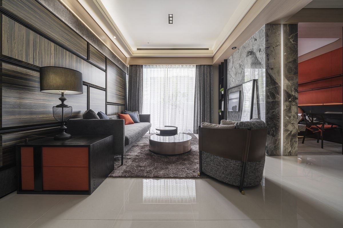採光良好的客廳,木質與石材圍塑奢華感,愛馬仕橘時尚跳色