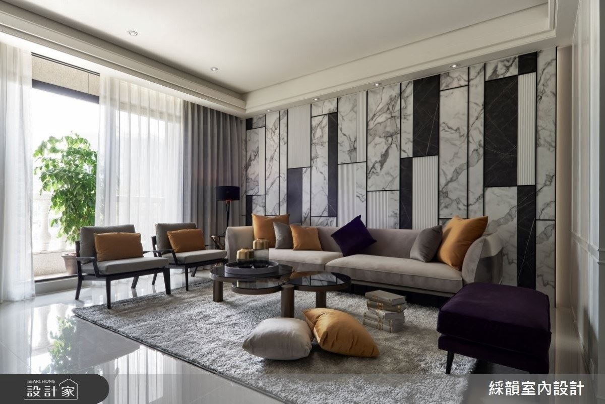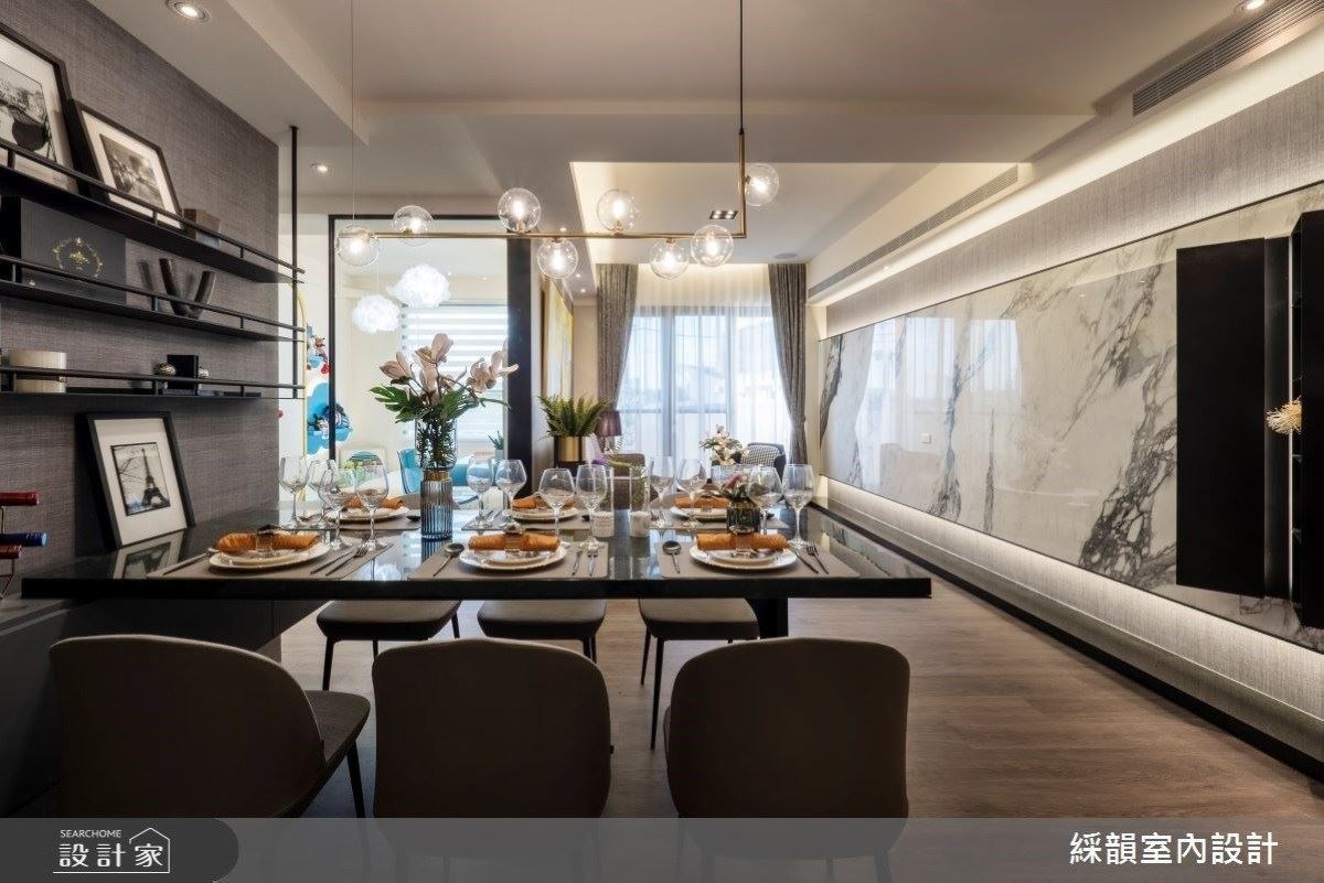 31 坪現代風住宅,設計師加入火立克板、石材、皮革、進口壁紙、鐵件等建材規劃,透...