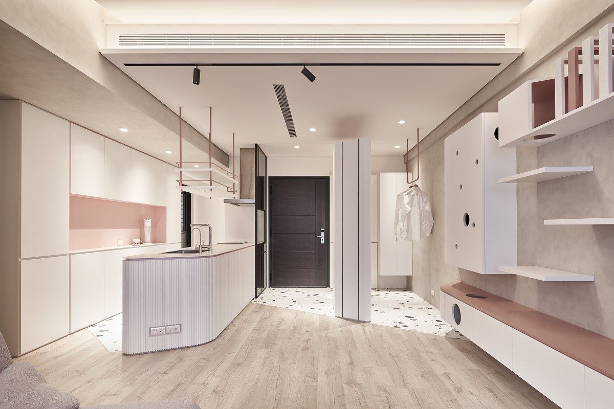 24坪的新成屋跳脫傳統,以貓為設計主軸,搭配屋主喜歡的色彩,將家轉化為一家人都喜...