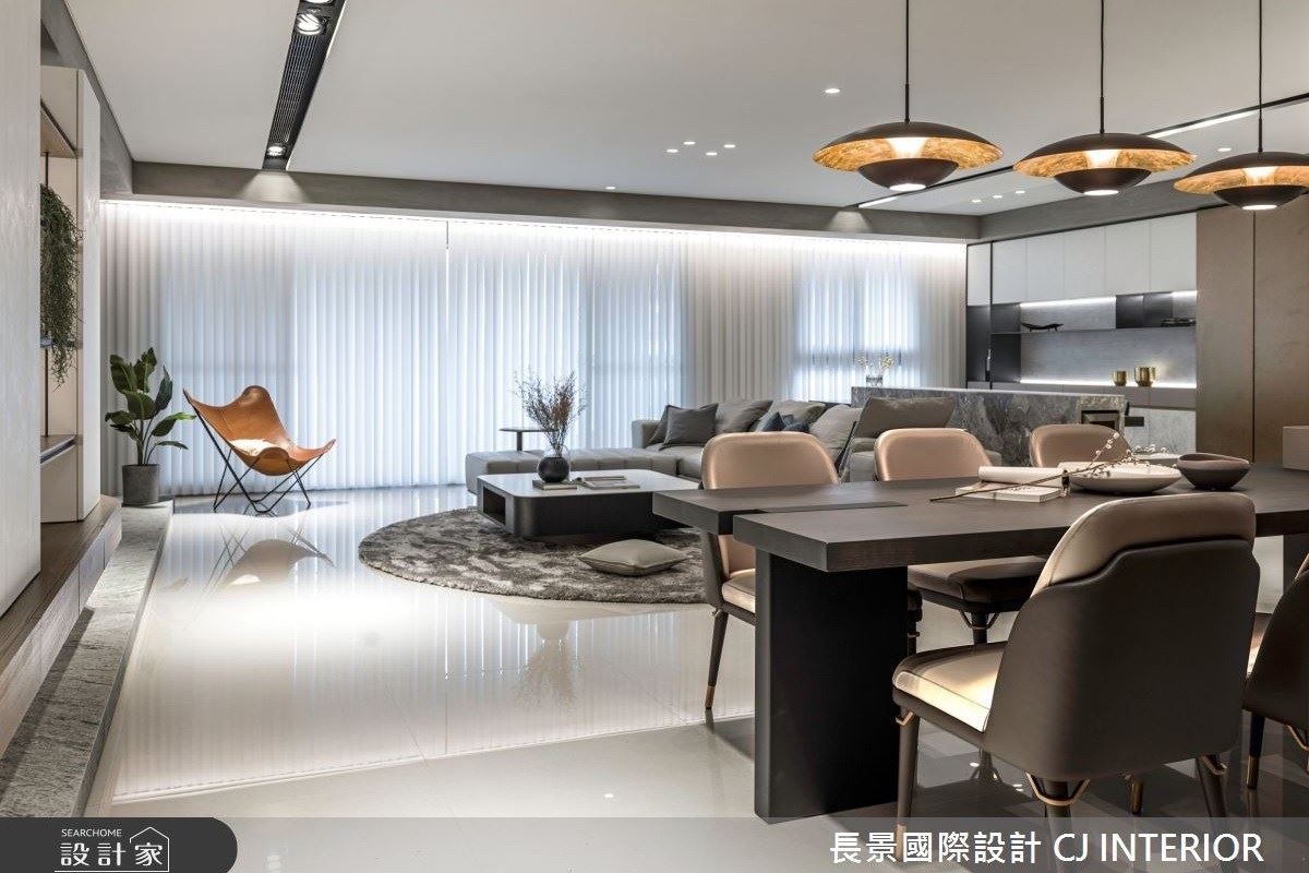 吳冠諺設計師巧妙連貫105坪空間,藉由開放式公領域,創造大器、開闊感受,並搭佐人...