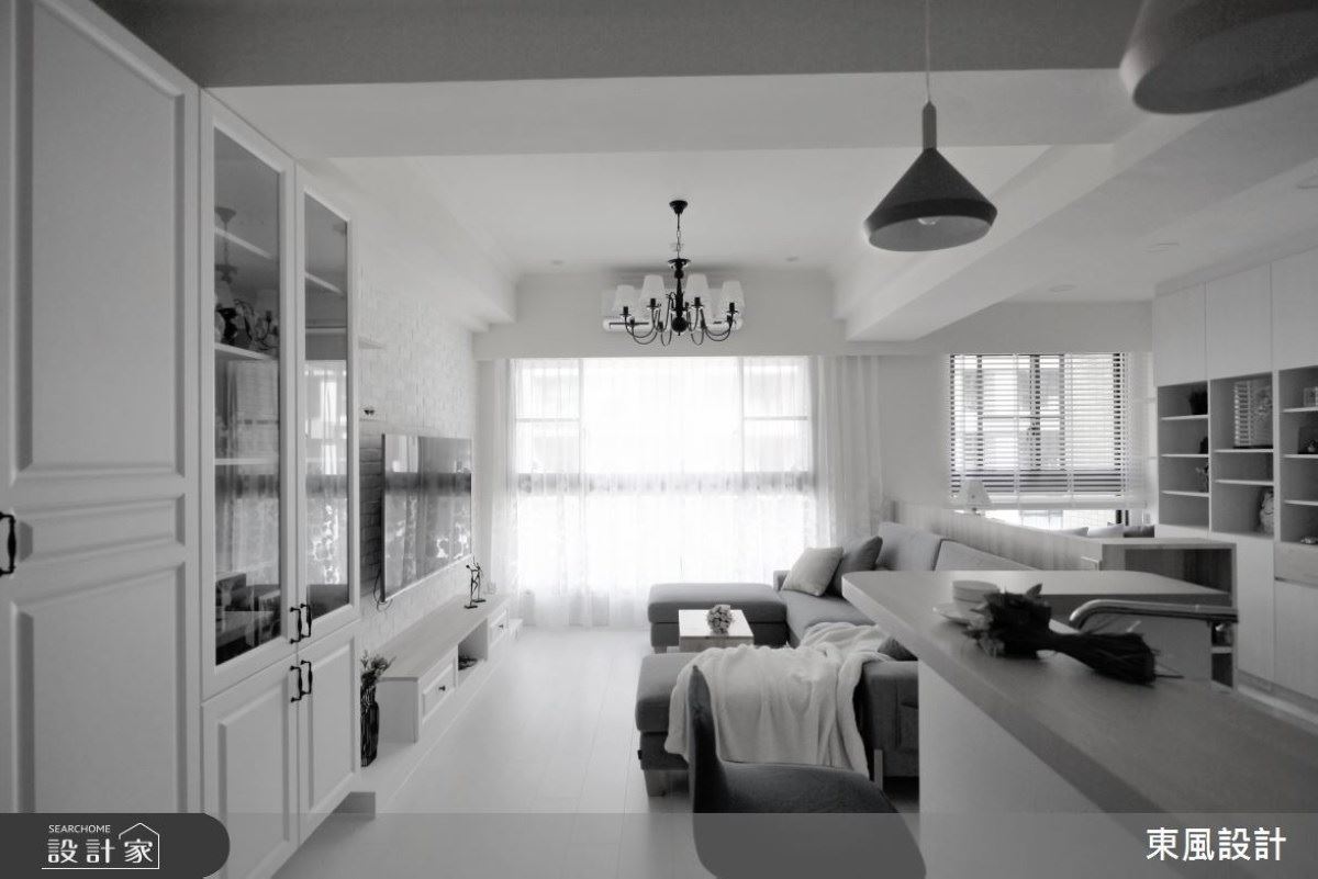 東風設計團隊在26坪新成屋中,融入莫蘭迪色系搭配,運用大量白色為基底,以及奶油風...