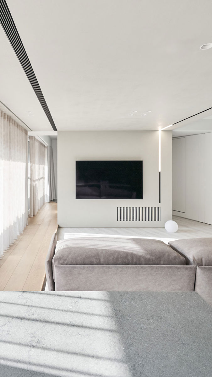 由沐慕室內設計精心規劃的60坪四房住宅空間,家庭成員一共有3位大人。因應屋主需求,設計師運用現代風作為主軸,搭配乳膠漆、超耐磨木地板、不鏽鋼、鐵件、明鏡、木作貼皮、烤漆、系統板材、木百葉、賽麗石、繃布、噴漆、礦物塗料、環塑木、戶外防水漆、保麗龍,打造全家人的夢想家居。