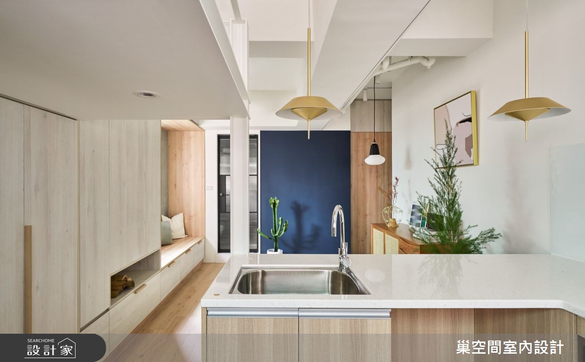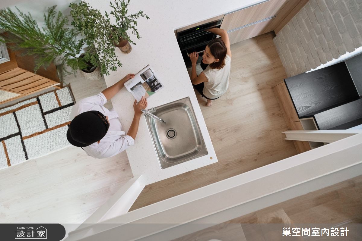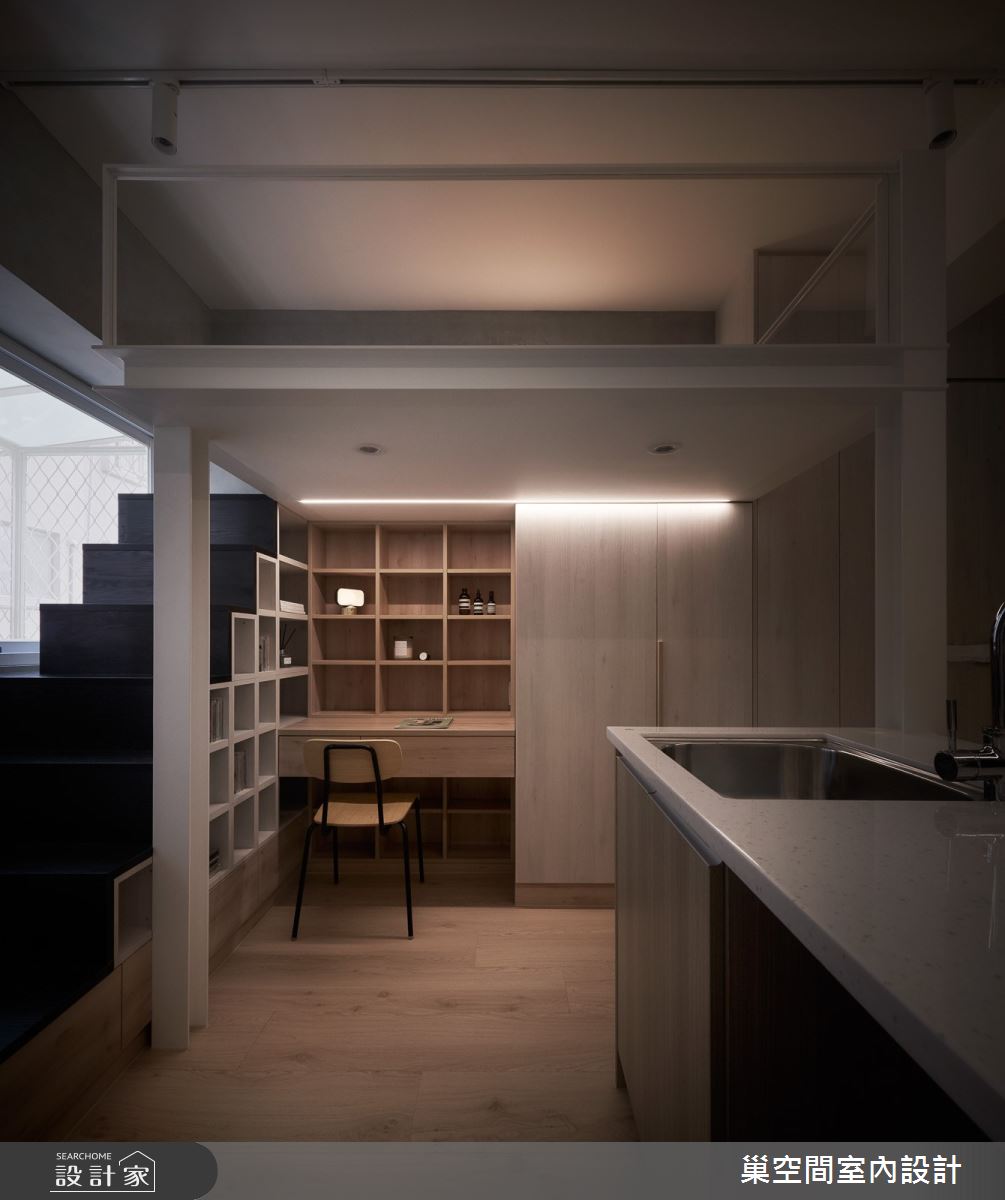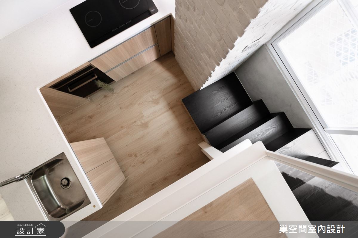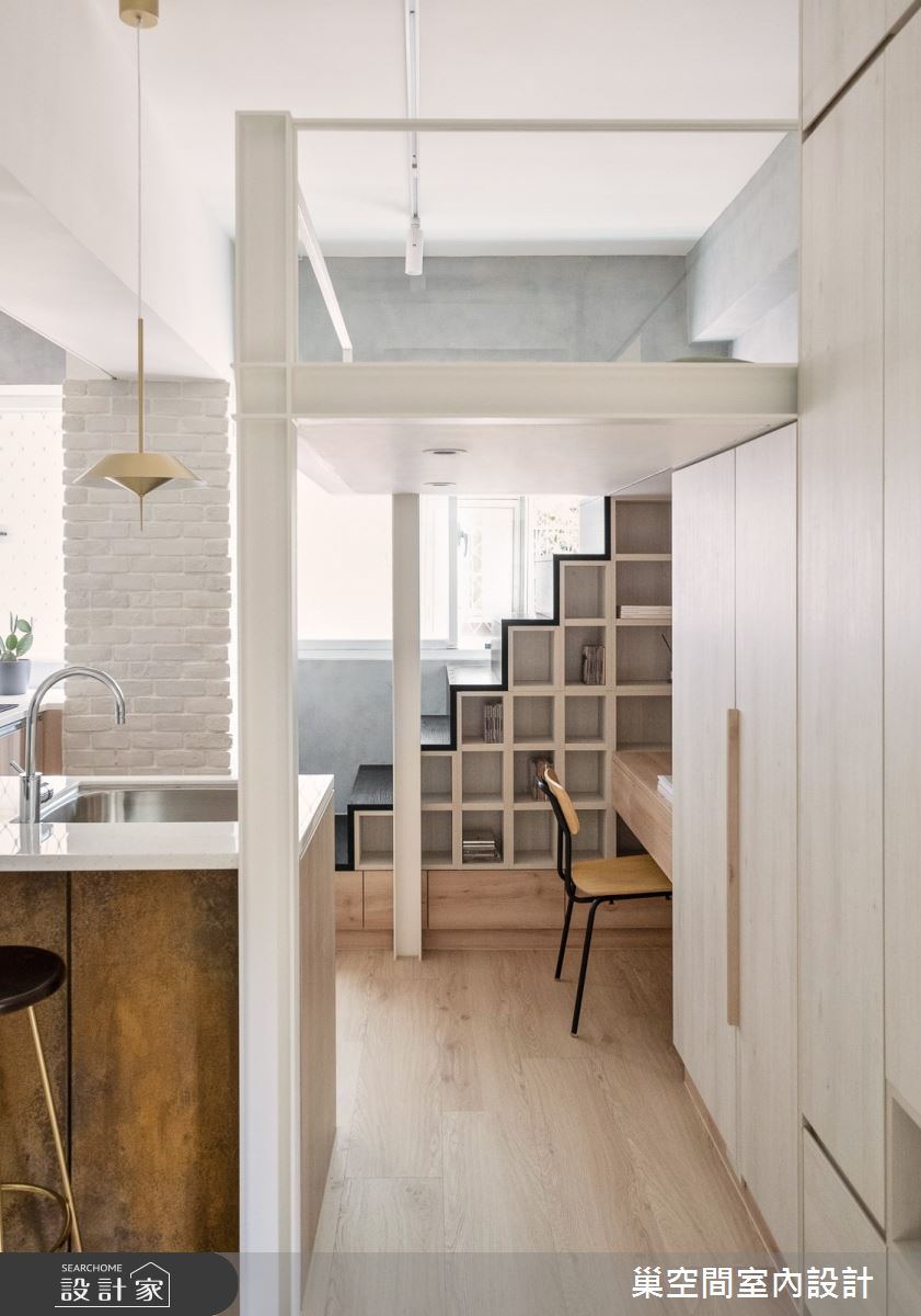 改造35年屋齡的老屋,設計師讓僅7坪樓中樓,化身一房一廳的清新北歐宅,先是改善原動線的不良與空間的坪數限制,捨棄隔間設計選用複層式樓中樓,以上下層區分出公私領域的使用範圍,同時讓空間內的大樑巧妙避開屋主的睡眠區域,敞開小坪數獲得雙倍的寬敞視覺,再來修繕採光面與的不足,運用玻璃建材將光線導引入內,打造通透明亮的輕盈空間感。