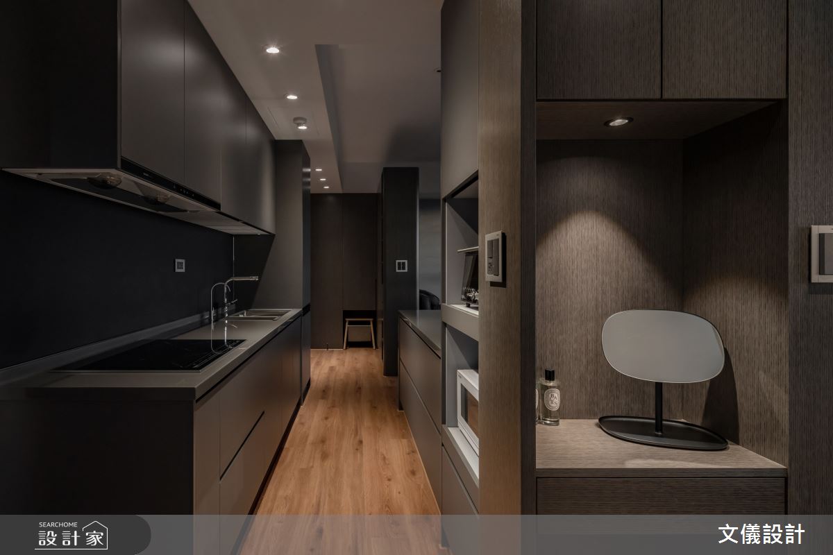 12 坪現代風小宅,設計師運用灰色建構空間的內斂品味,在 1 房 2 廳 1衛的格局下,完美分配竹炭漆、系統板、檀木木皮、長虹玻璃、樂土、鐵件烤漆、霧面結晶鋼烤等建材比例,且讓客、餐、廚在動線上更簡約、流暢,打造出小宅的齊全機能與個性格調感,快跟著小編一起來看看吧!