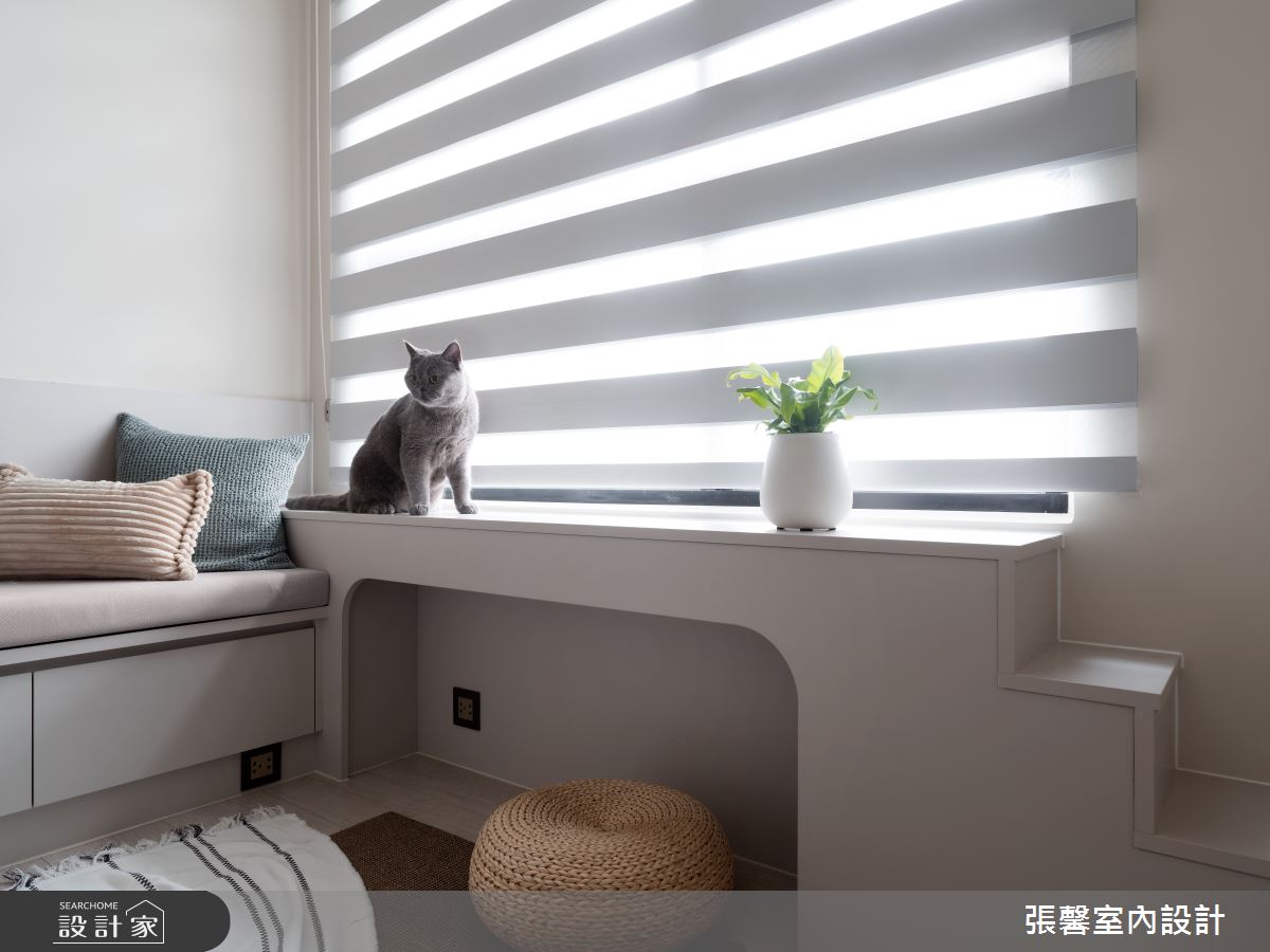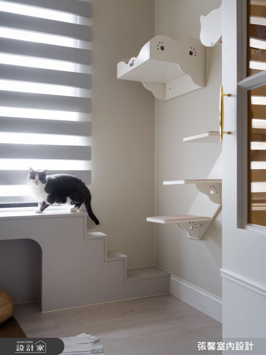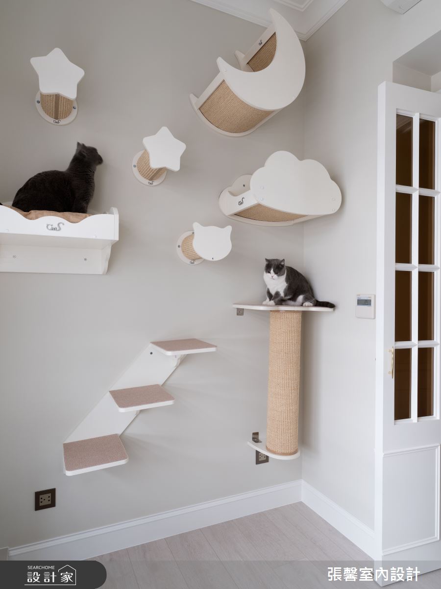 面對 37 坪的中古屋,設計師秉持 582 的設計概念,透過獨到的空間品味及家具陳設,重整原有的四房格局,將書房與貓咪房納入設計中,打造出美劇般的兩人四貓生活。