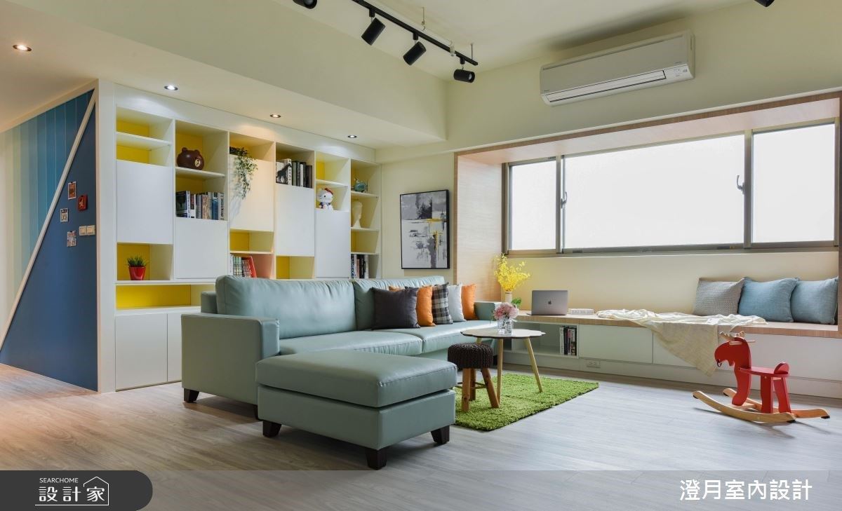 28 坪的現代風中古屋,作為新婚夫妻的愛巢,因此在空間中運用 20 多種的顏色相互搭配,佐以動線的重新規劃,創造寬敞明亮的鮮豔居家,