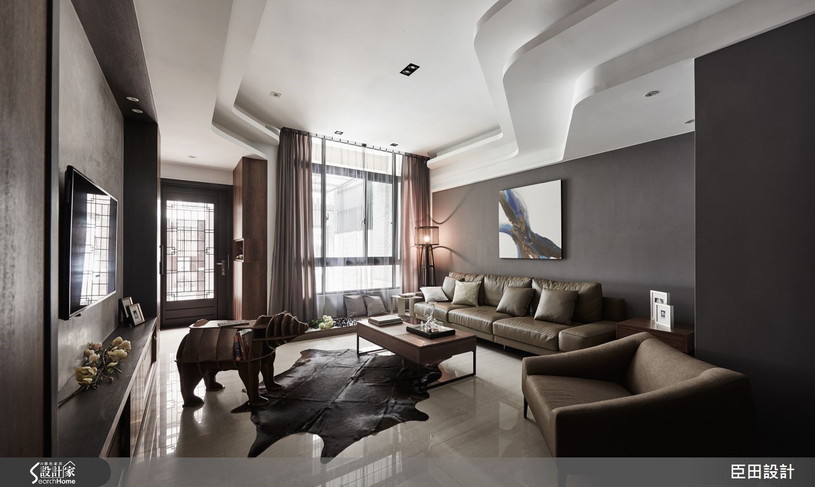 沉謐的深色調,搭配渲染自然肌理的木質家具,迎來端莊大方的生活氛圍,流動的線條架構自天花處延伸向內,為公領域勾勒俐落簡約的藝術