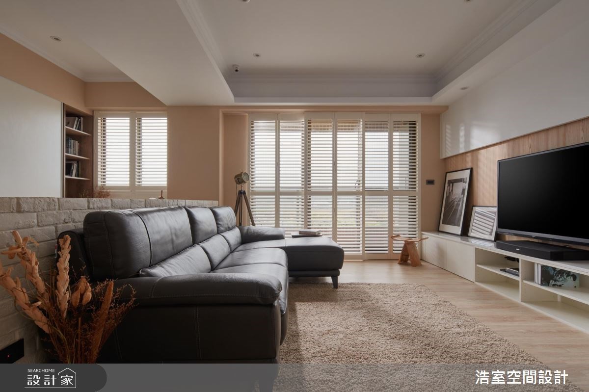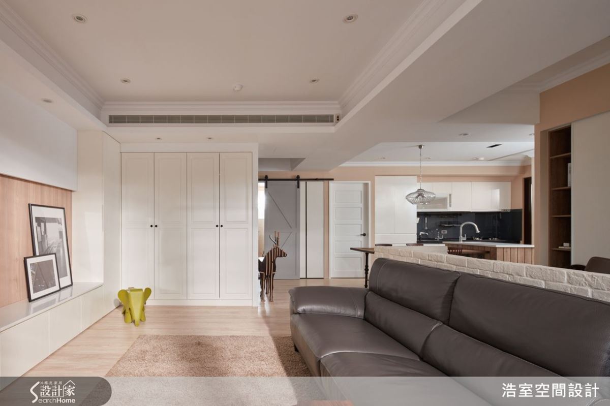 30 坪新成屋,由於屋主期望能讓孩子坐擁寬闊、自然的居家空間,設計師首先增加公領域範圍,讓客廳、書房採開放規劃,促進一家人日常中