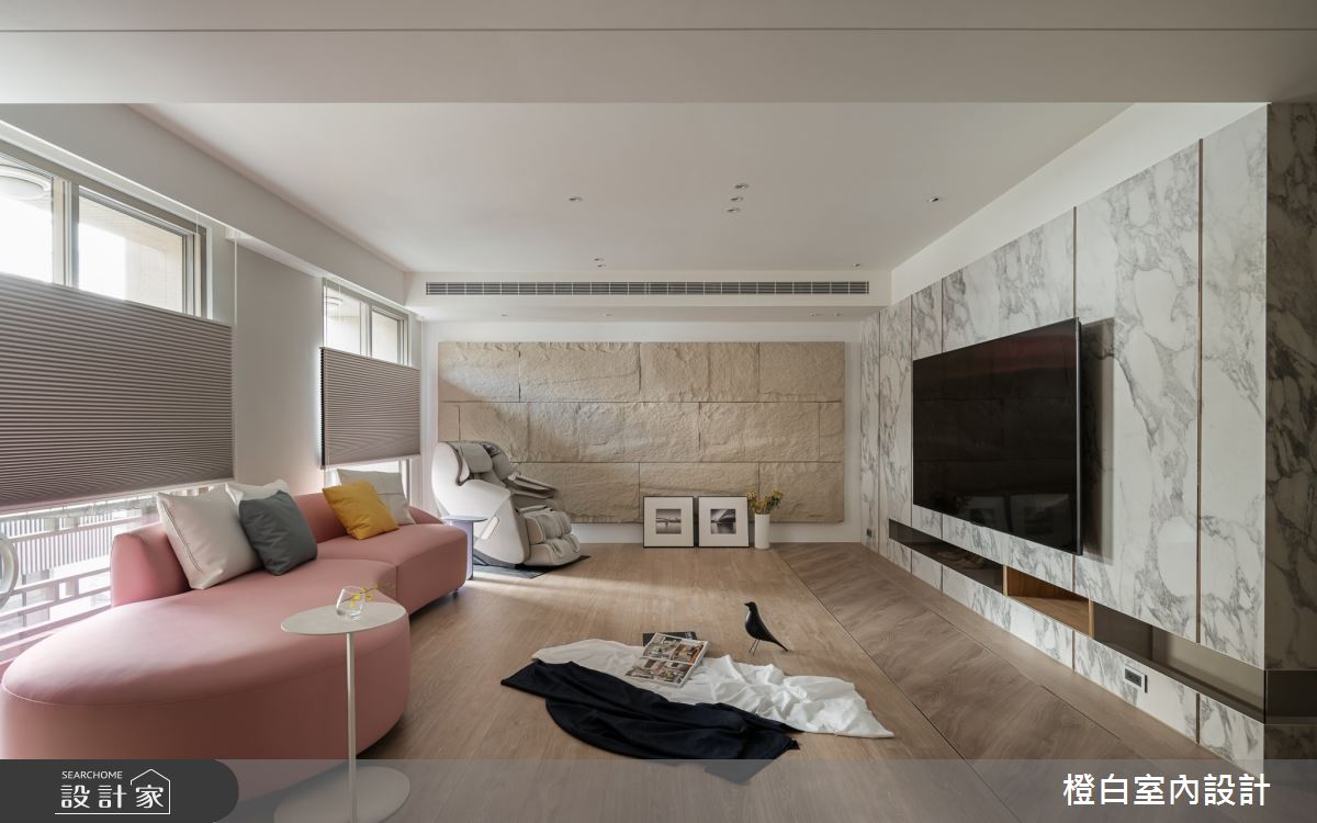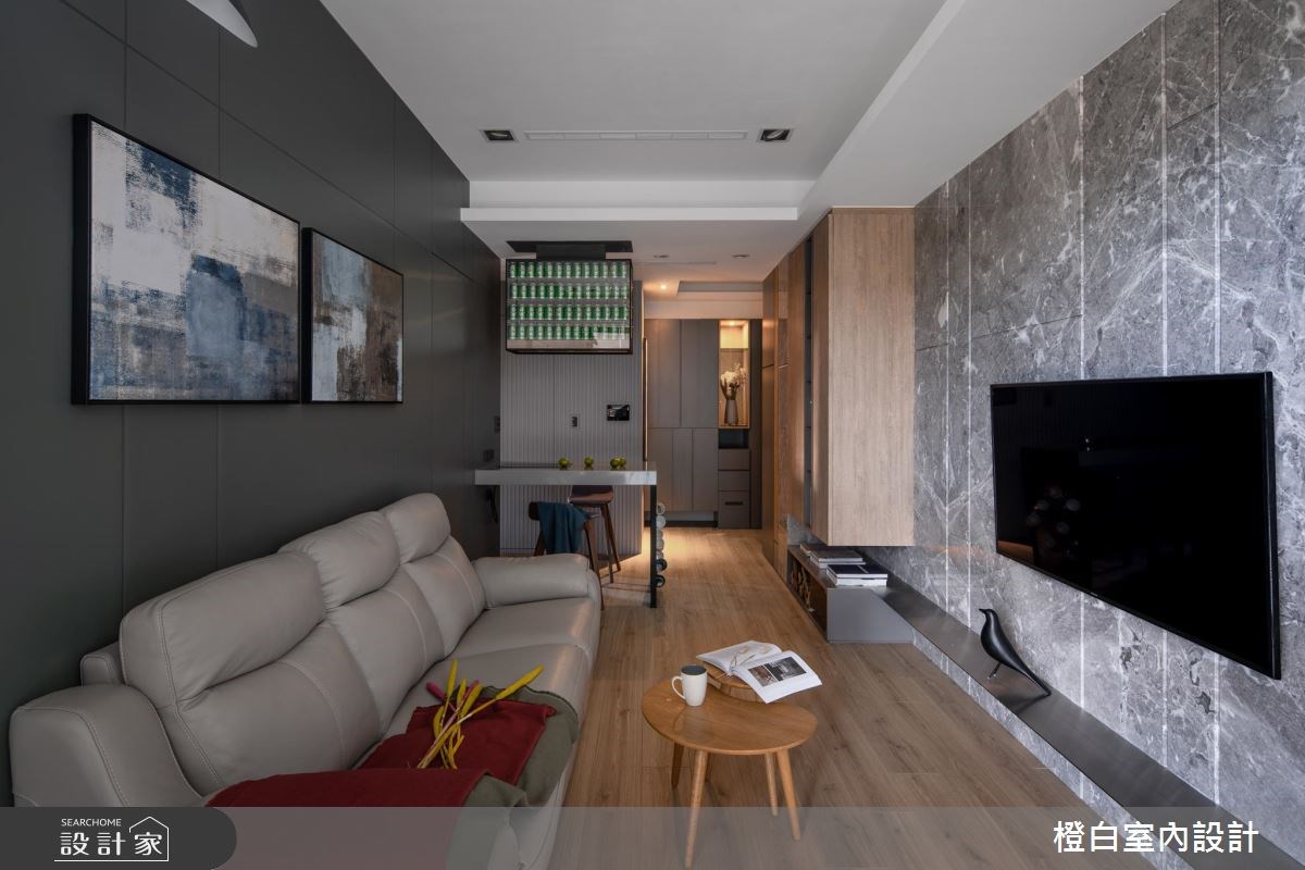 15 坪的現代風小宅,透過隱藏的手法,將門面與收納機能,融入立面與地坪中,使得整體空間顯得乾淨敞亮,同時又用簡單的色彩,讓居家有