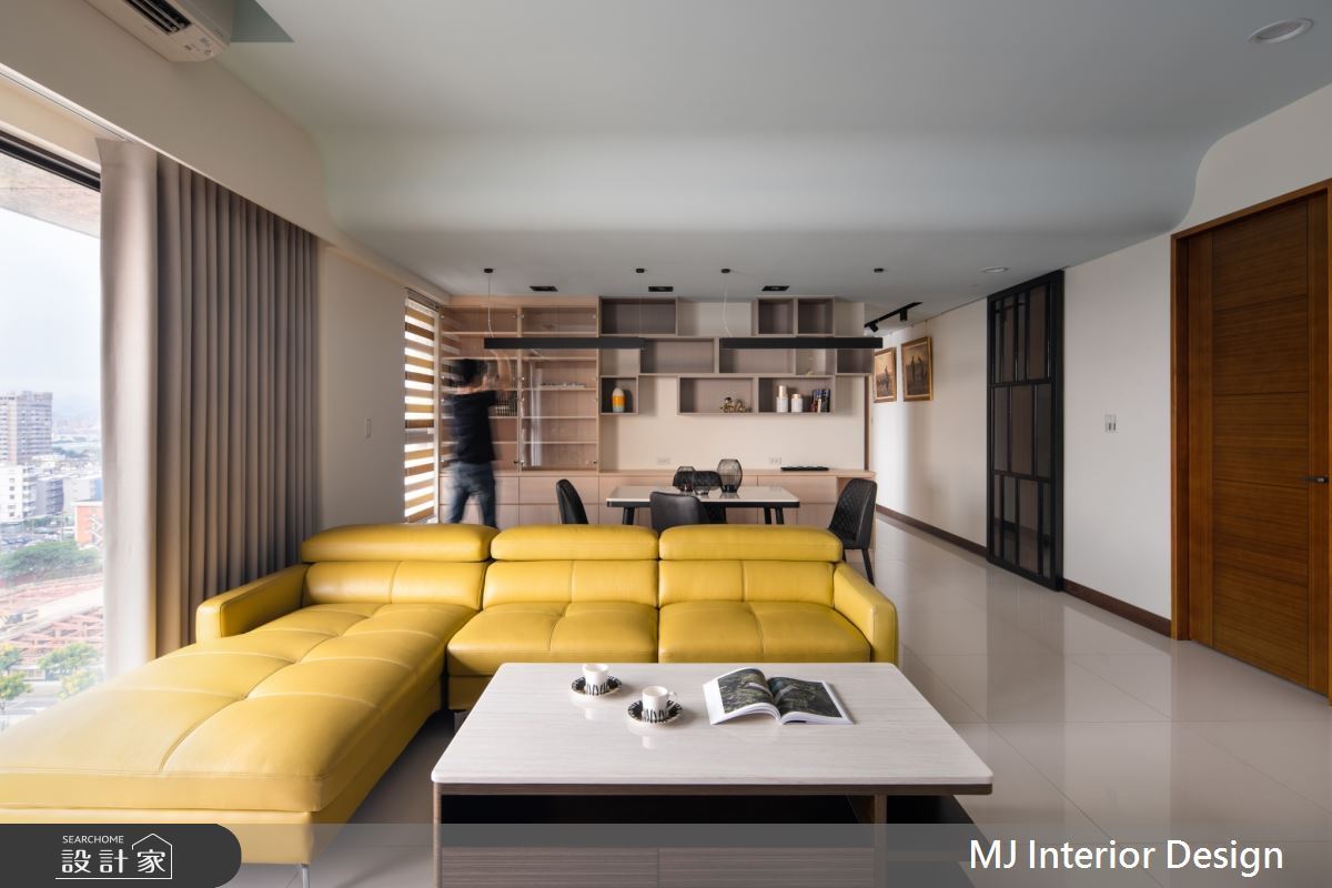 35 坪現代風居家,空間挹注男主人喜歡的簡約感與木質調,並依循其收藏畫作的習慣,在新家挹注展示機能,同時運用刪繁就簡的規畫手法,