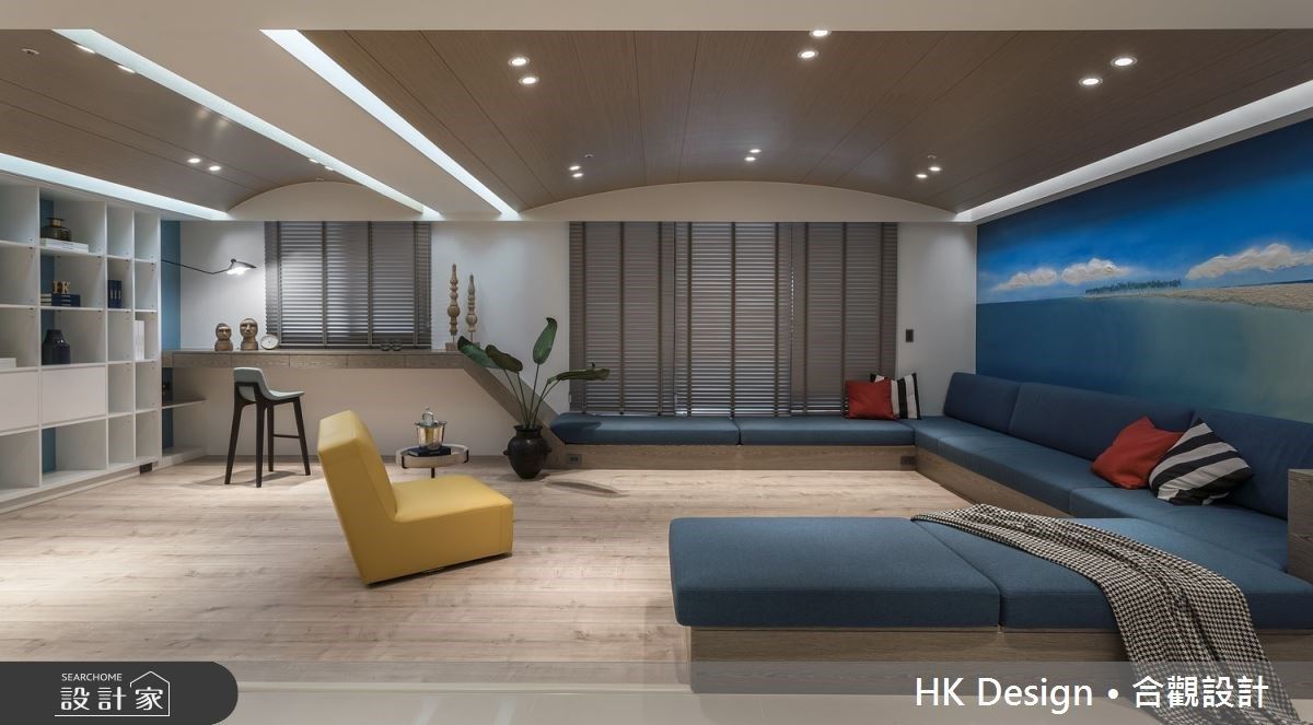 45坪混搭風居家,運用鮮明色彩繪製壁畫,將熱情四射的沙灘海景帶入空間,並加入棕櫚葉、漂浮木等自然元素,刻畫紓壓療癒的度假感受,