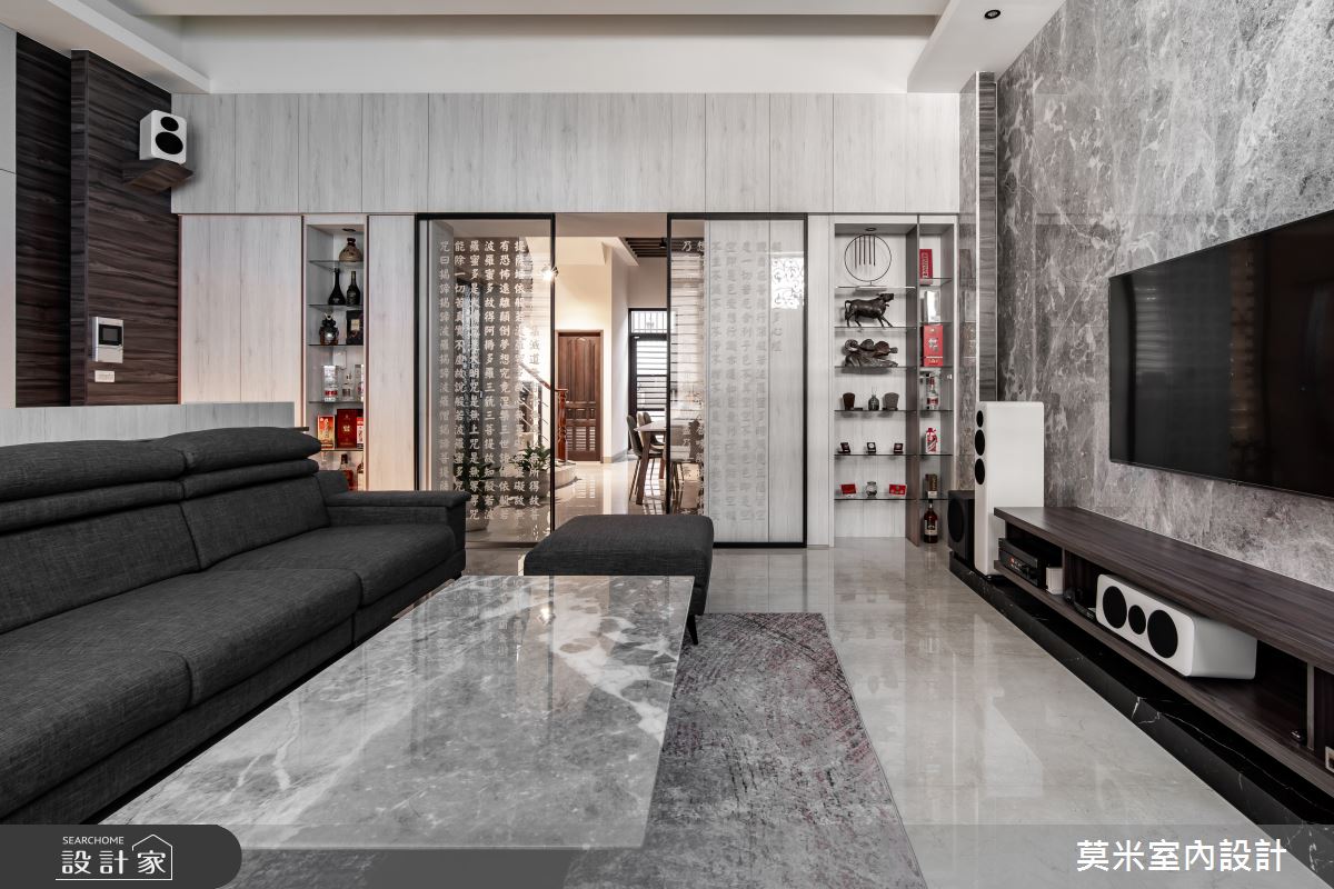 32坪新成屋(5年以下)_混搭風客廳案例圖片_莫米室內設計_莫米_黑白H會館之2