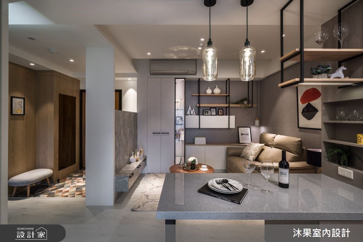 15 坪的休閒風單身住宅,透過精準格局的分配,從玄關、客廳、餐廚,以及臥室空間皆有舒適的空間感,設計師以穿透式設計手法,讓公共空
