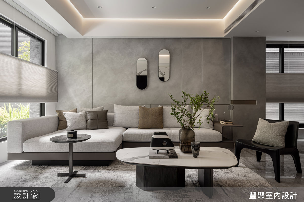 60 坪現代風豪宅的男屋主,希望屋內保持明亮寬廣的樣貌,同時也期盼跟三個兒子玩在一塊,享受放鬆生活,因此設計師巧妙應用優雅的石材