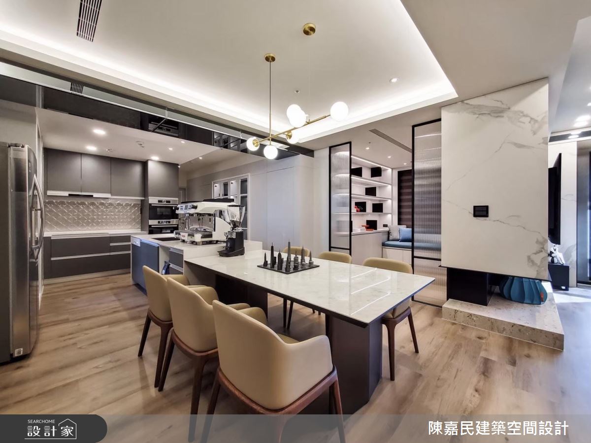 「進行廚房規劃時,『收納』一定得先考量進去。」陳嘉民建築空間設計的蔡佩儒設計師如此提到。走進廚房裡,大至冰箱、微波爐、烤箱等