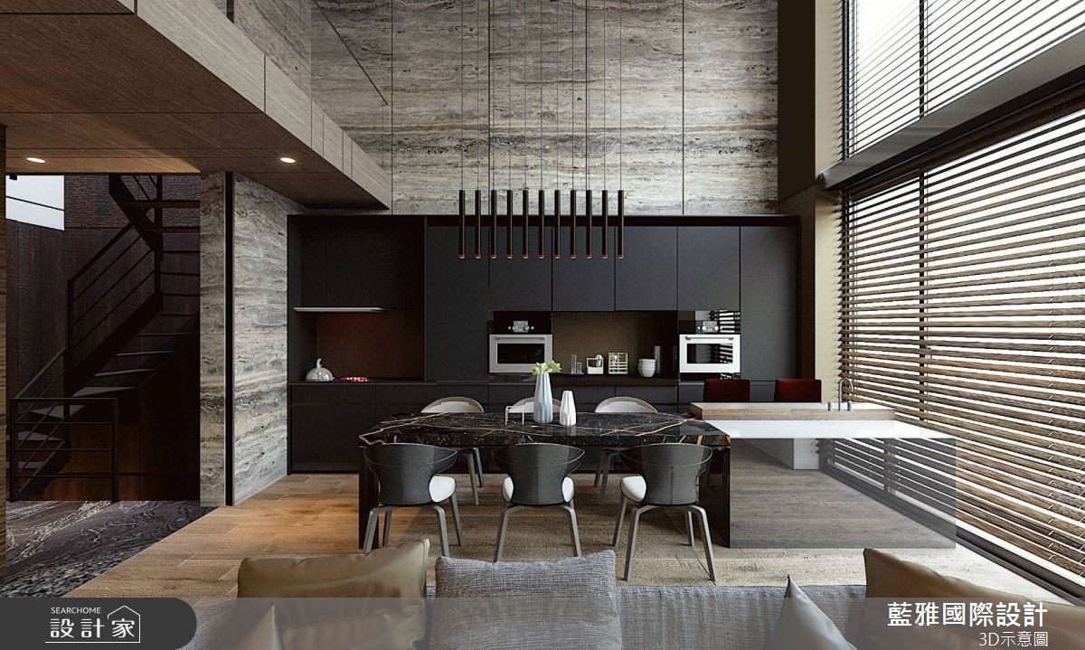 結合現代奢華的時尚品味,以及簡約內斂的典緻氛圍,以新東方風定位的 53 坪空間,結合墨染般的石面紋理、手工染色木皮,以及靚黑鐵件