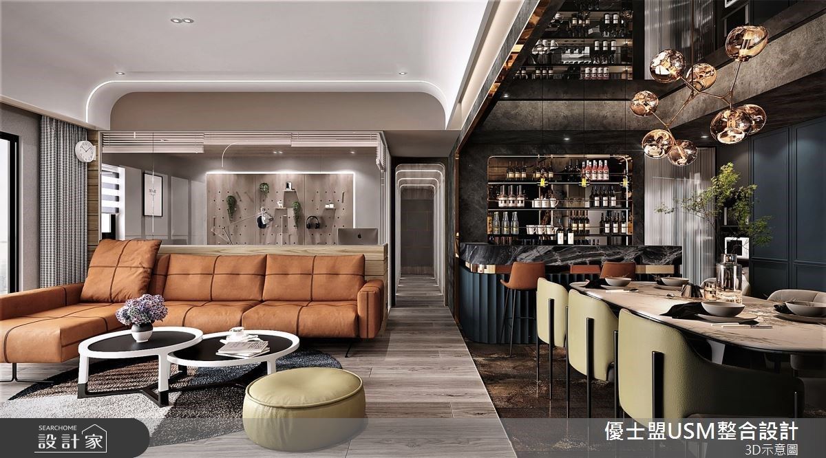 左轉放鬆、右轉微醺!33坪現代英倫宅,開放式格局打造居家版奢華餐酒館!
