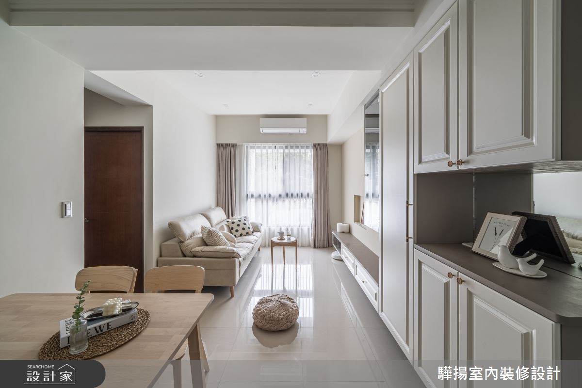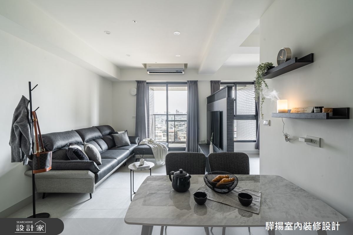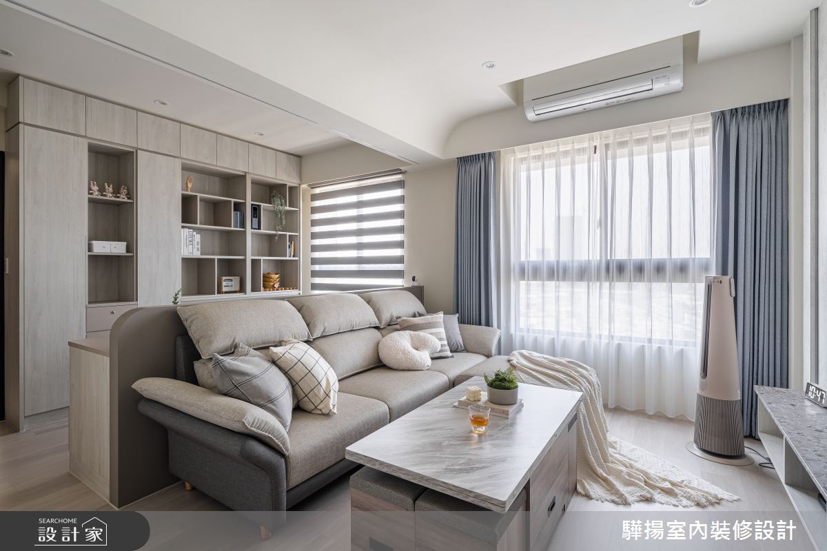 在驊揚室內裝修設計的王亭今設計師之巧手下,19 坪新成屋被重新賦予輕盈優雅的靈魂,翻轉成一家三口的日式簡約風小宅。室內透過弧形設