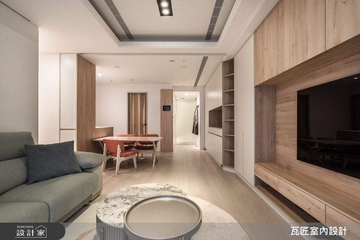 23坪新成屋,屋主兩夫妻從事醫美產業,偏好清爽白淨的感覺,也需要大量的收納空間,設計師盤點屋主需求實地勘查後,將原本三房的格局