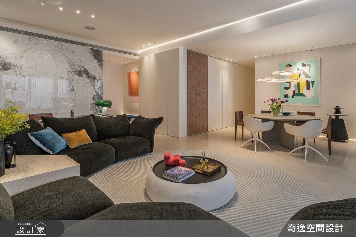 郭柏伸設計師撇開華麗炫目的裝潢,此次回歸白派設計初衷,講究原始純粹的設計,運用簡約的線條,挑選品牌家具、藝術畫作、影音設備,