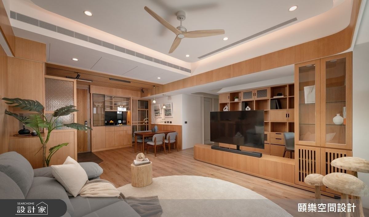 35坪的新成屋,透過設計規劃,變身成擁有4房2廳2衛的美宅,屋主嚮往恬靜的生活,遂以日式風為設計主軸,運用石材、大量實木鋼刷木質與
