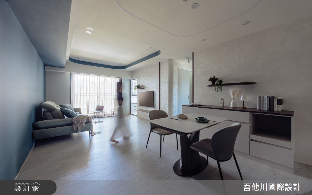 25坪新成屋(5年以下)_混搭風客廳餐廳廚房中島案例圖片_吾他川室內設計_吾他川_暮光雲居_新竹竹東之16
