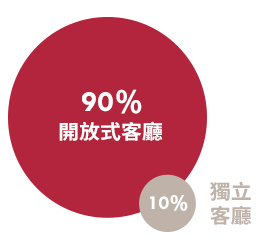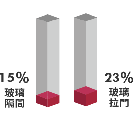 在需要閱讀專注的書房,或擔心廚房油煙問題,分別有 15 %和 23 %的屋主,會選擇在室內加裝玻璃拉門和隔間,讓空間成為一個獨立的玻璃盒子。