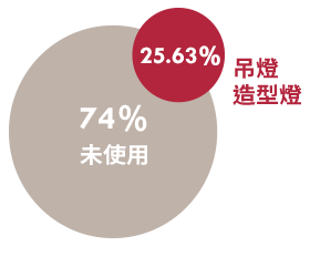 飲咖啡、文青潮流席捲居家,選用長形桌的比例大幅增加,也影響燈光的配置,除了古典風、美式風、鄉村風居家外,超過25.63%的人,選擇吊燈及造型燈,達到視覺美感及氛圍創造。