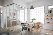 玻璃引光、放大的效果非凡,近 40 % 的傳統的封閉式隔間牆已經由玻璃隔間、拉門取代,不但能節省預算,更能讓居家空間機動性大幅提升!