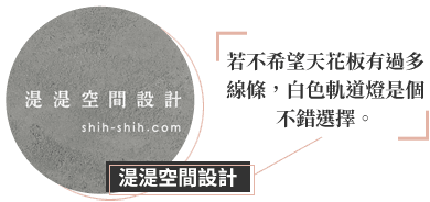 與黑色軌道燈的剛硬感不同,白色軌道燈給人一種柔和的視覺效果,不會干擾家居的主配色,加上軌道燈價格款式多元、角度能自由轉動,屋主接受度大幅增高。尤其是年輕人喜愛的無印風、輕工業風,都相當適合使用白色軌道燈及白色鐵件。