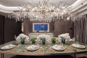燈飾對一個空間來說,不只點亮光明,外型同時也形塑空間的視覺焦點。只是,空間是許多細節綜合起來的整體視覺感,而挑選燈飾從形成與風格的一致性,直徑長寬與家具比例,材質穿透與空間錯覺放大與縮小都是需要專業圖面再三琢磨,才能成就空間的美好。就像錯落式燈具,因為形體繁複,搭配的餐桌線條盡量簡單就好,反之,如果燈具本身簡約,餐桌線條則可以活潑些。保持機靈的思維邏輯,才能控制好空間的整體視覺。