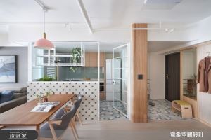 防疫時期除了減少出門以外,居家空間的衛生清潔也相當重要,像在這間 24 坪的混搭風老屋,就透過好清潔的造型磚面,搭配玻璃門窗的通風設計,方便屋主整理環境,使一家三口能夠安心又溫馨地生活。