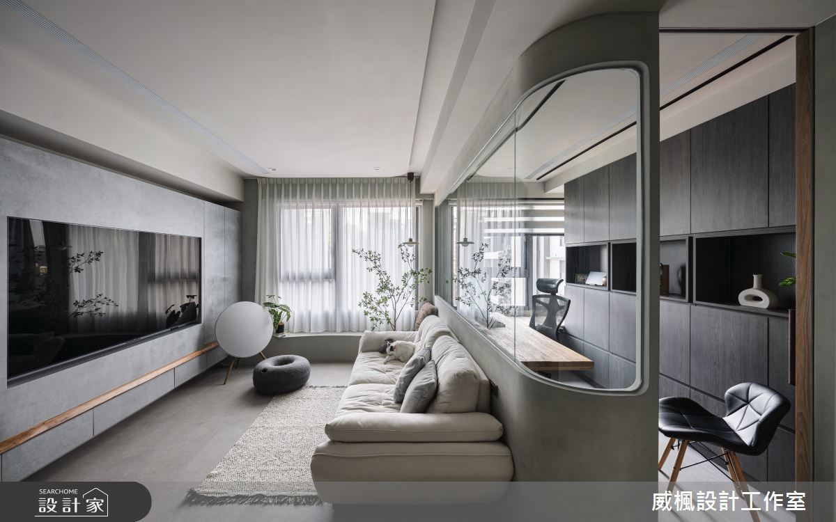 59坪的空間住宅,以日式寧靜風格做為主調,融合現代風的簡約俐落以及些許的中式懷舊風作為點綴,為夫妻二人和毛小孩們打造出專屬的理想住宅,成為安心放鬆的都市秘密花園。