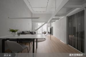 19坪的小坪數因有良好的建築高度,以向上利用並建造夾層的方式,達到爭取生活空間,同時為了實現這樣的設計理念,不致使空間產生壓迫,採用簡約留白設計風格,儘量減少室內的裝飾,以保持整體空間的純淨和開放感,有效透過這樣的設計風格夠提升寬闊的視覺效果,讓居住者在室內感受到更大的空間。
