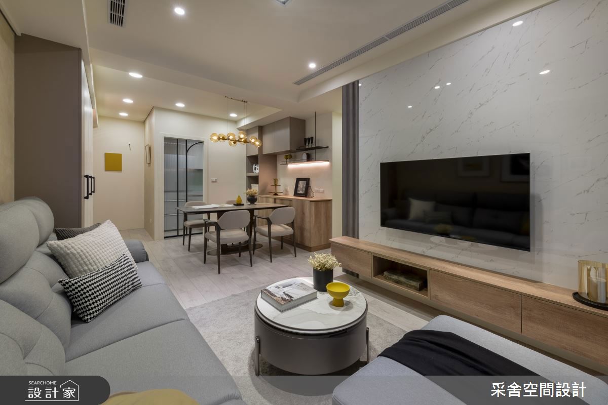 此案為30坪新婚宅設計,透過現代簡約風做為空間規劃,透過白、灰、米色調鋪陳出內斂的空間基底,搭配局部質感紋理的壁面及鮮明木質肌理櫃體,交織現代人文的風尚底蘊。搭佐燈帶、造型燈飾,點亮視覺新意,且烘托出溫韾、柔和的宅邸風情。