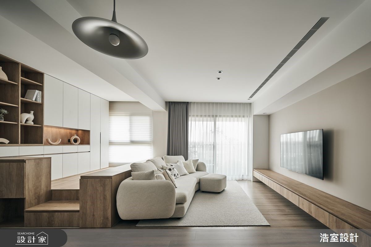 你也喜愛簡約而高質感的空間氛圍嗎? 31 坪的單層住宅,因應屋主熱愛閱讀的喜好,以及大量的原文書收藏,特別打造出開放式的雙向書牆,無論身處於客廳或書房,都能輕鬆拿取書籍,再藉由「三明治」式的層次設計與懸空設計,降低櫃體的沉重感受,創造輕盈優雅的居家氣質。