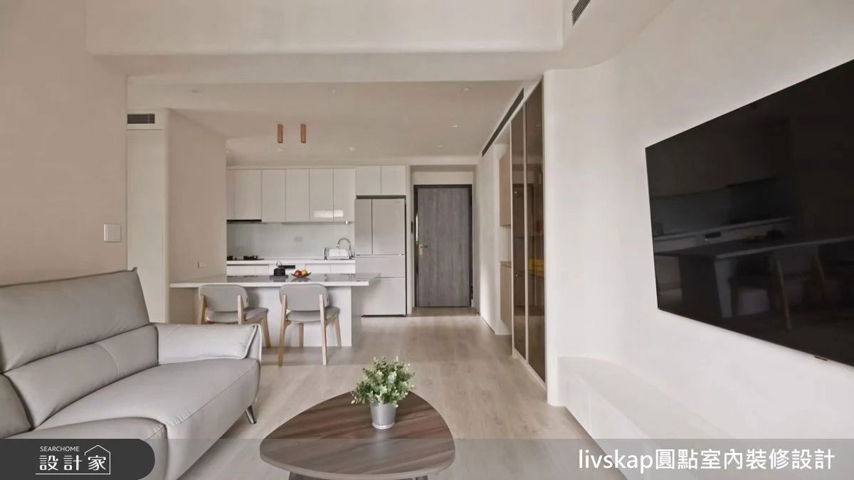 13坪的預售屋,是夫夫二人與一隻貓咪、狗狗未來的新家,由於原始坪數較小,兩隻愛寵個性又非常活潑好動,屋主二人希望能將小宅坪效全然發揮,不管是日常生活,還是親友來訪都能有空間很大的感覺。所以在客變階段就請慎常『穿透感設計』舨舍空間設計協助規劃客變,拆除傳統隔牆,弱化場域界線,打造出通透又機能完善的滿分生活,向大家證明坪數不是問題!