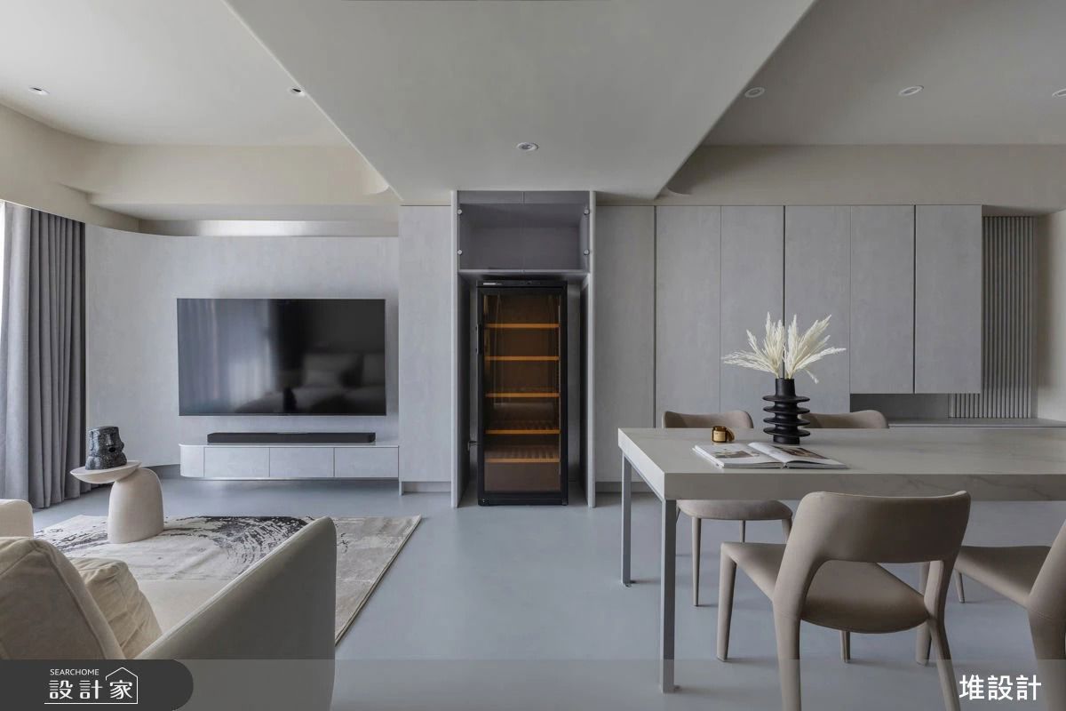 設計師在了解屋主美感喜好、需求與生活習慣後,以現代簡約風替整體空間定調,並選用屋主喜愛的灰色調鋪陳整體室內,再透過跳色軟裝、家飾與植物點綴,創造豐富、質感美學生活。