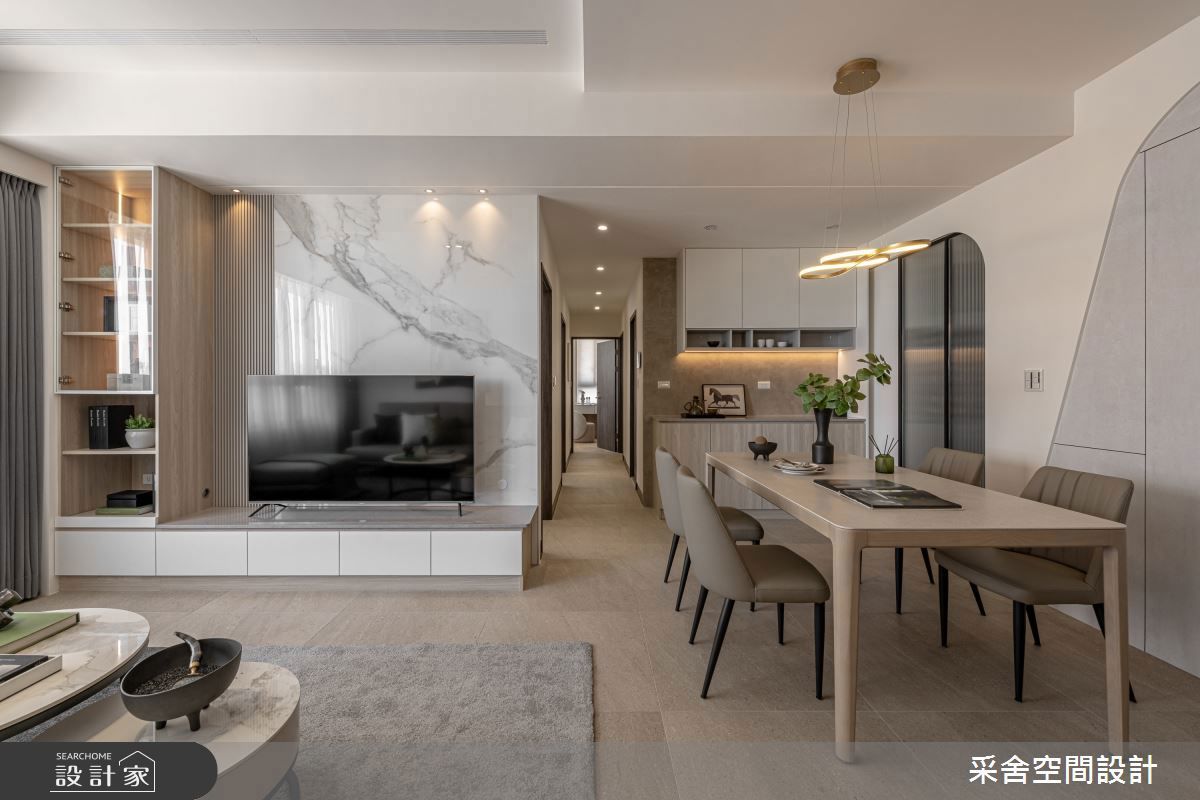 細細咀嚼每一幀柔光,將日常的脈絡摺進縫裡,再讓生活輕輕安放,等待品味。這間 39 坪的現代風新成屋,風格定調於溫潤且低飽和度的質感,睿利設計透過超耐磨木地板、水泥粉光與鍍鈦金屬等異材質,為居者建構出品味出眾的避風港。由玄關進入公領域,一道極具巧思的玻璃展示屏風,巧妙化解了傳統屏風的厚重感;屏風整合了收納機能與電子壁爐,讓溫暖的火光與藝術陳列融入生活場景;通透的茶玻與灰鏡材質,確立了場域界線,同時讓光線能更順暢地穿梭於空間之中,為整體設計奠定了充滿溫度與細節的基調。