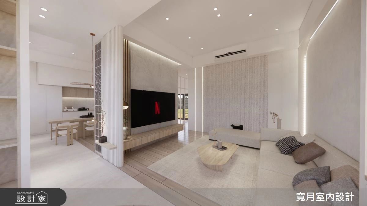 當理想遇見實踐,家的輪廓便在時光中緩緩清晰。這座坐落於靜謐之地的現代簡約風獨棟別墅,歷經長達三年的精雕細琢,從預售階段便由設計師深度參與,與屋主、建商三方協作,終於為一家四口實現了他們對「理想家園」的所有想望。屋主期待居住空間為一棟能承載親密生活的容器,同時兼具開闊尺度的安居之所。通過設計師的規劃,四房的格局規劃在41坪的空間中顯得從容有度,一樓的佈局,巧妙地將客廳尺度設定得比廚房更為宏大,突顯了家庭聚會與休閒機能的核心地位。同時一樓梯前設計半穿透屏風,提供遮擋與引光功能;連動橫拉門與階梯收納櫃形成一體成型的設計語彙,導引視線也遮蔽穿堂煞。