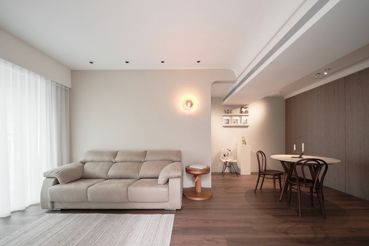 40 年老屋告別舊態!弧線美學隱藏結構柱、玻璃磚引入營造書香日常,蛋黃區老屋生活感與價值翻倍