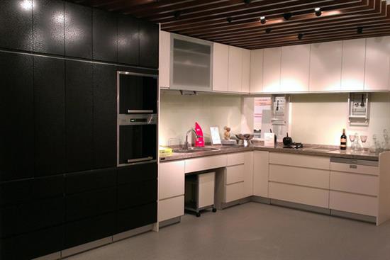 一太日本原裝黑色浮雕收納櫃+ 白色浮雕L型系統廚具