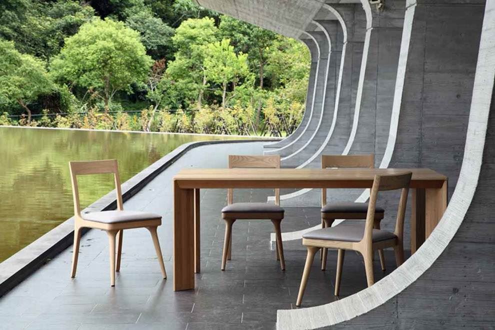 興樺「elwood」品牌傢俱,簡潔大方的MATT餐桌充滿木頭的厚實感,俐落的線條減輕笨重的壓力,搭配椅腳一體成型的LEE餐椅,四方的造型中凸顯圓弧細節的美感。