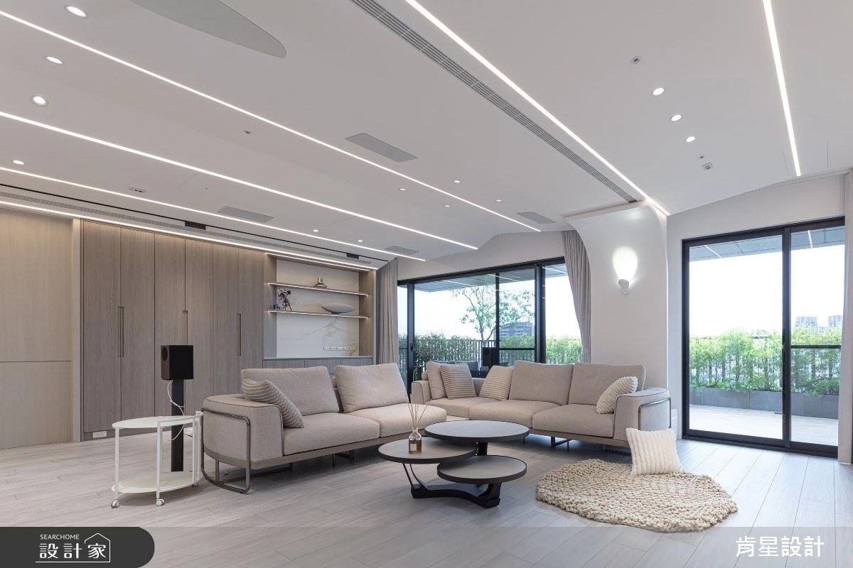 在陽光灑滿的百坪大宅中,緯傑設計王琮聖設計師以建築思維梳理空間,根據屋主四口的生活量身訂製!不僅打造玄關通往廚房的靈活動線,更藉由客廳轉向放置百吋大電視,滿足開闊的空間感與便捷的使用體驗!在簡約中創造溫度,讓家擁有飯店般的舒適與品味,實現屋主理想家的