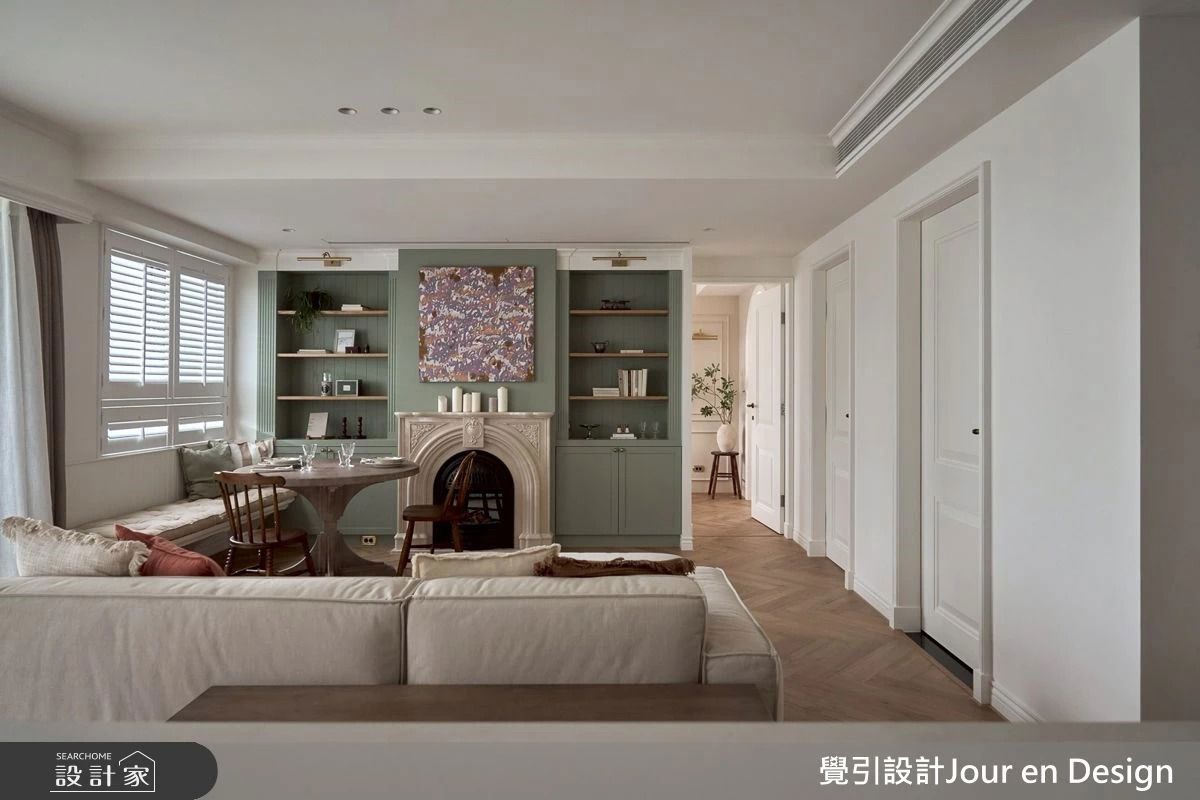 相較於法式的華麗美學,英式「愛德華時期」展現出輕盈明亮的優雅底蘊,以古典比例為骨架,輔以柔和細膩的線條,營造出恬淡且精緻的舒適氛圍。覺引設計陳志伊設計師,便以此為靈感出發,鋪陳帶有溫度的木地板,以五金物件點綴空間,搭配一抹平靜的鼠尾草綠,替一對曾於英