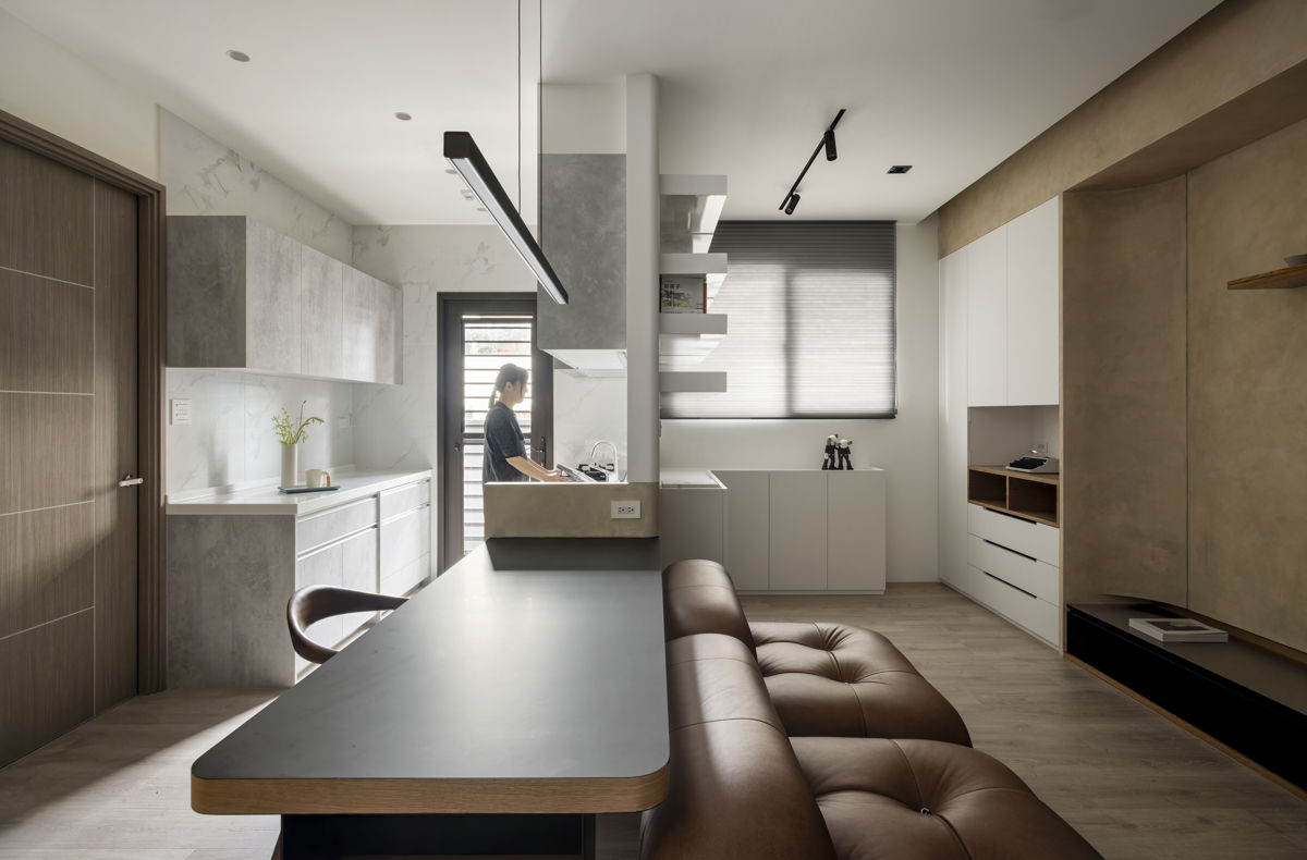 19.8坪簡約北歐宅,多功能雙面中島搭配足量收納,以木質點綴灰...