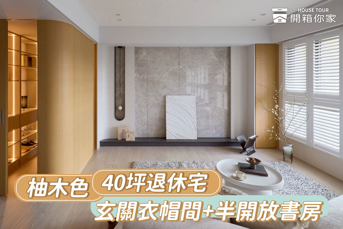 40坪精品木質退休宅,柚木北歐風混搭大理石紋,玄關獨立衣帽間+...